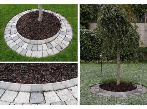 ALU DESIGN okrogla obroba AD100fi100 v obliki kroga za zaključke tlakovcev, betona ali asfalta, za zaščito ločnico okrog dreves, grmovja, drogov luči, raznih stebrov v urbanem okolju ali okolici hiš.